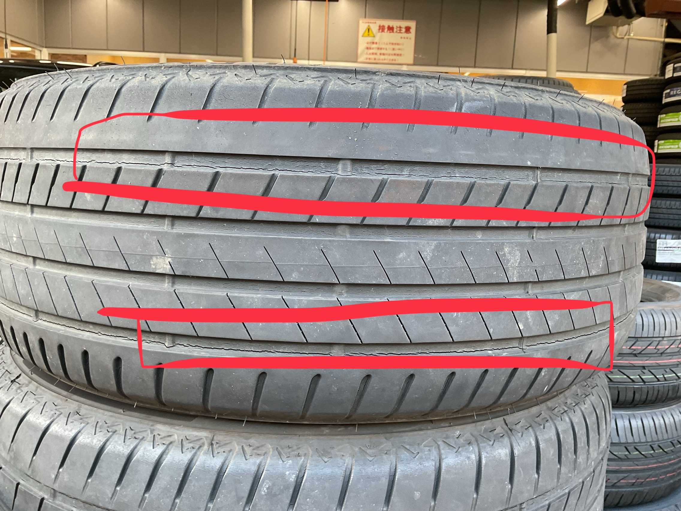 もしこういったひび割れが発生している方は、お早めのタイヤ交換を推奨いたします。