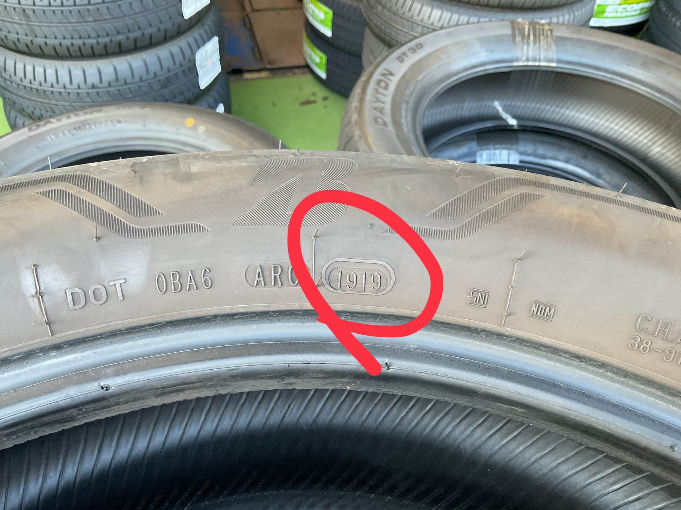 タイヤの製造年数の表示は、この4桁の数字で表されます
