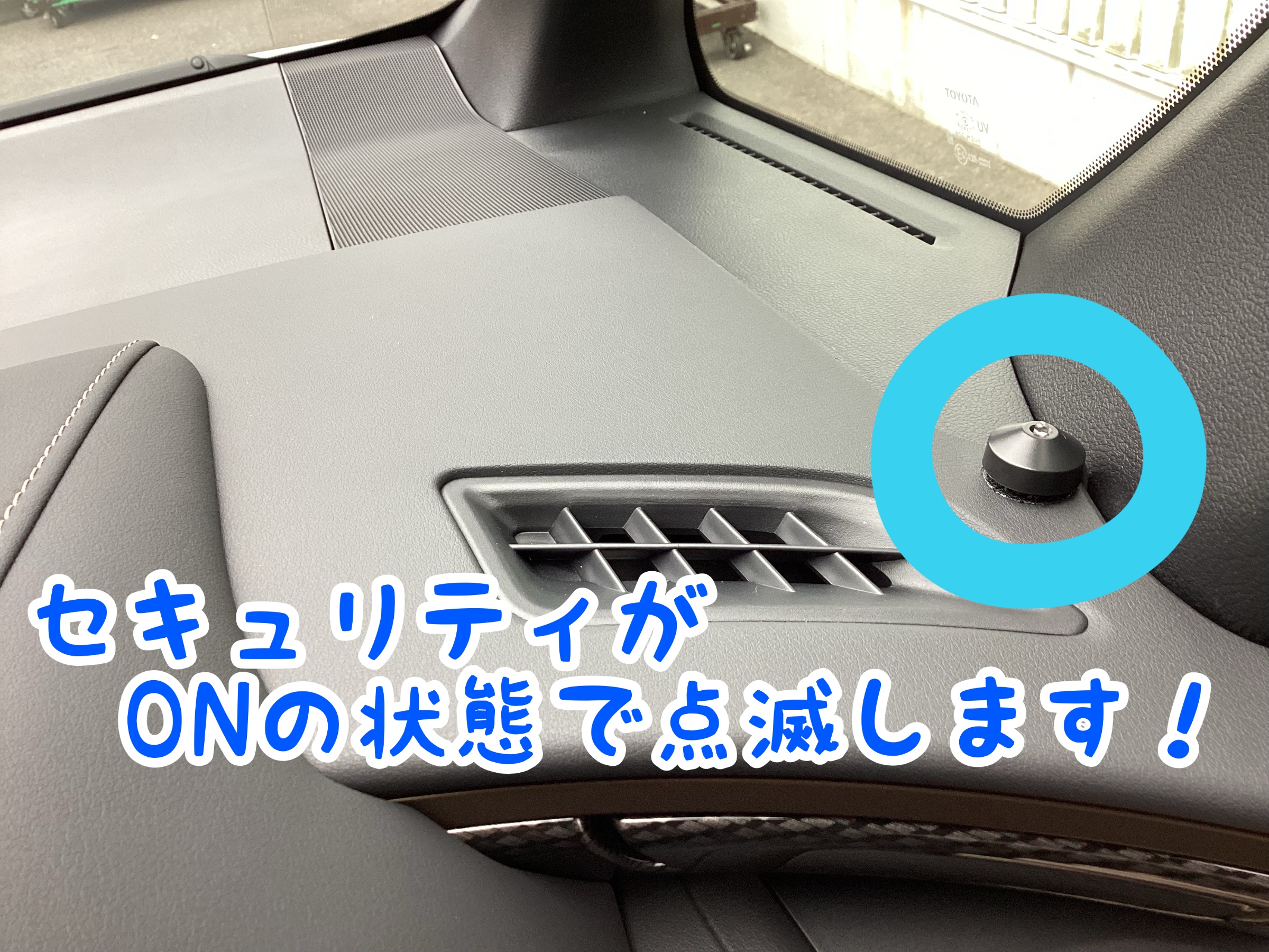 ダッシュパネルセキュリティ作動時にブルーのLEDランプ点滅します