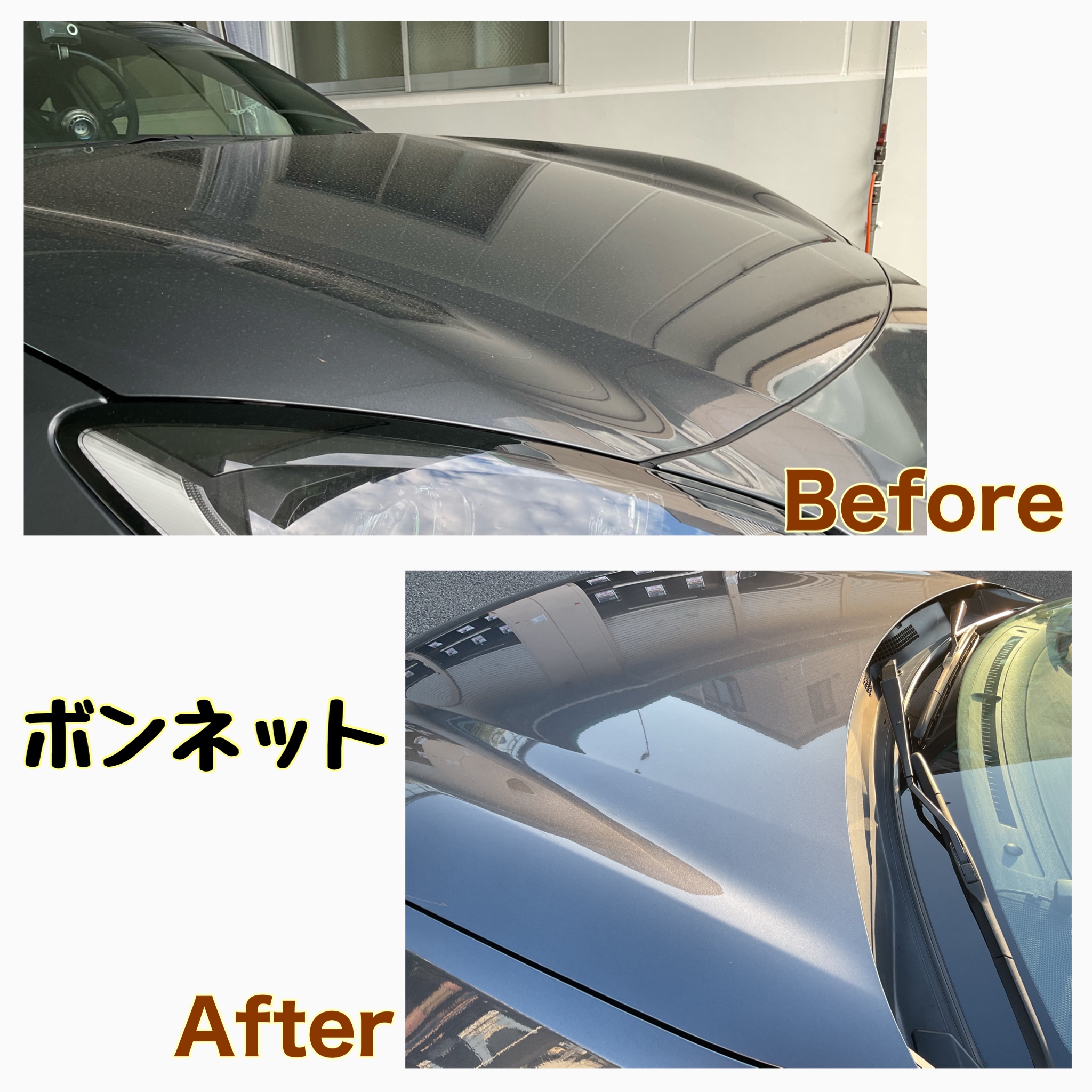 純水手洗い洗車を施工したボンネットの