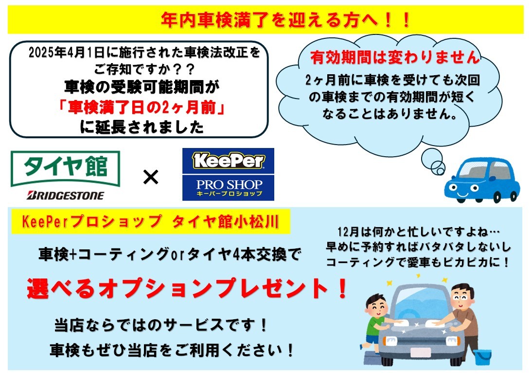 年内限定!当店で車検+コーティングorタイヤ4本交換されたお客様へ日頃の感謝を込めて