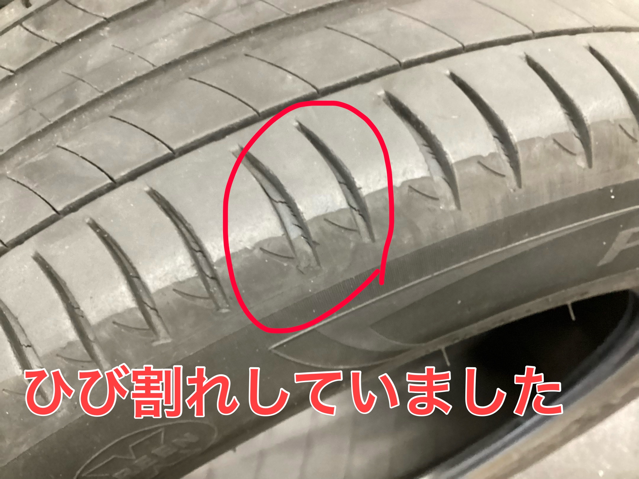 ゴム製品ですから、年数が経つとタイヤ自体が硬化してしまいひび割れが発生します