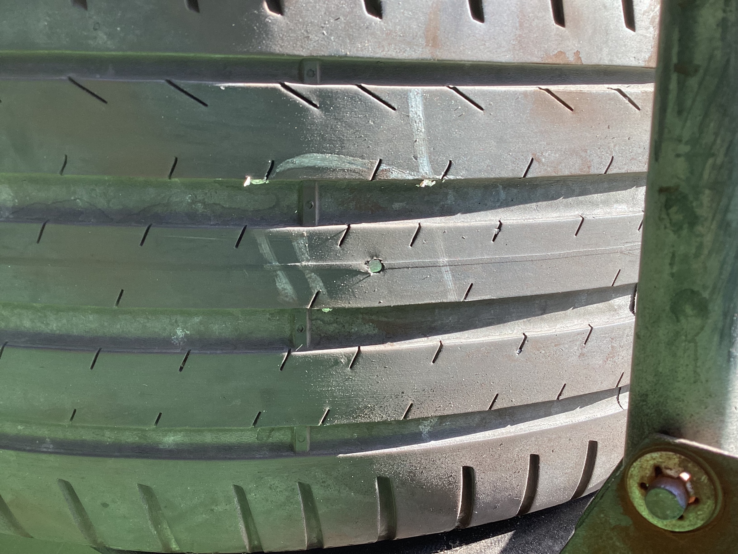 同じタイヤに釘が刺さっていました
