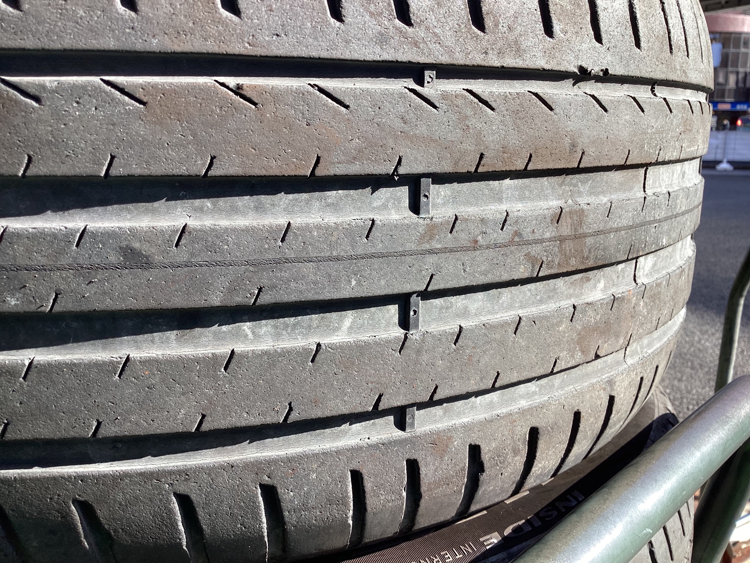 同じタイヤに釘が刺さっていた場合、修理ができないのと全体的に摩耗が進んでいたことをお伝えし、今回は4本交換とさせていただきました。