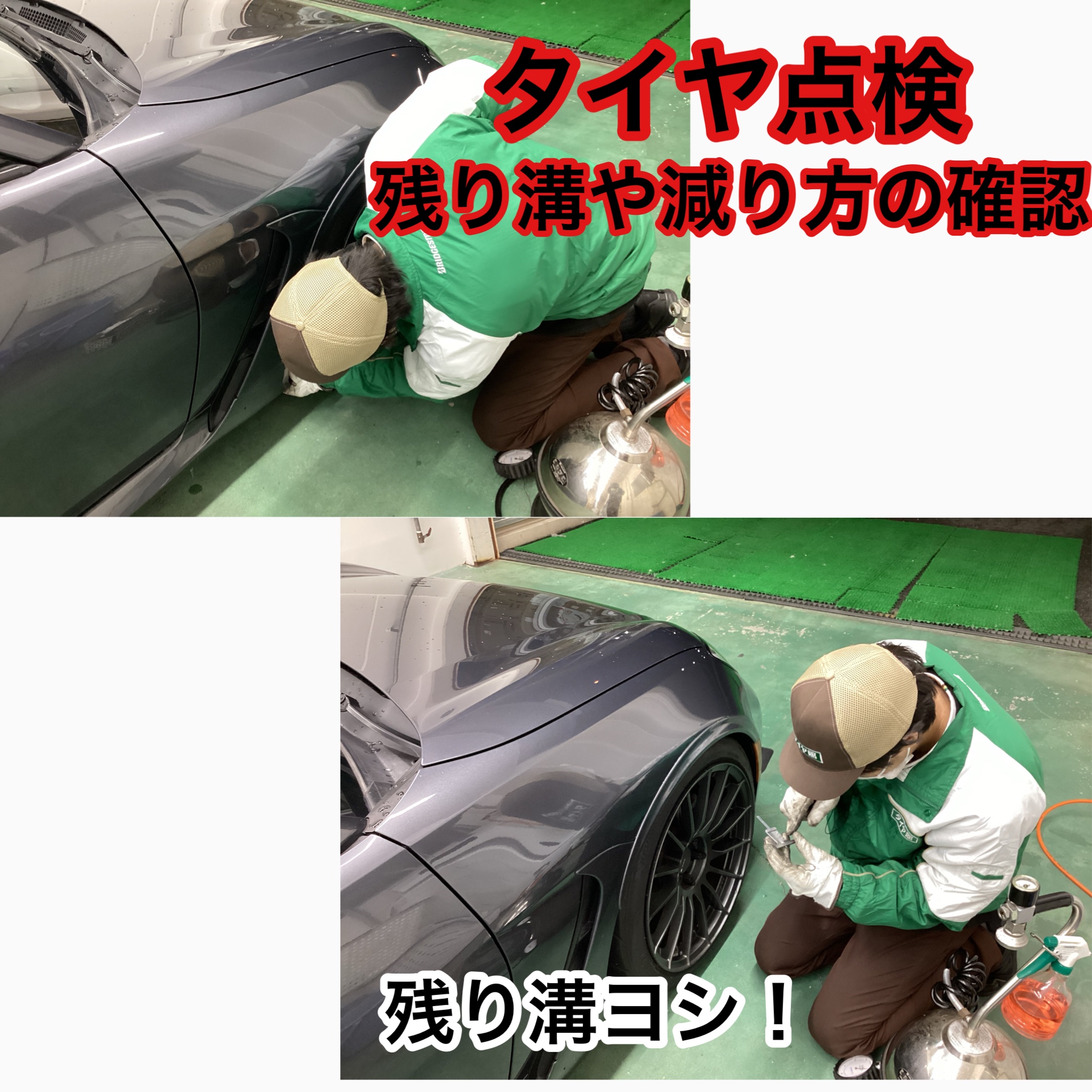 残り溝が少ない場合や、変な減り方をしている車両で安全に不安が有るときは、ご報告させて頂きますが、