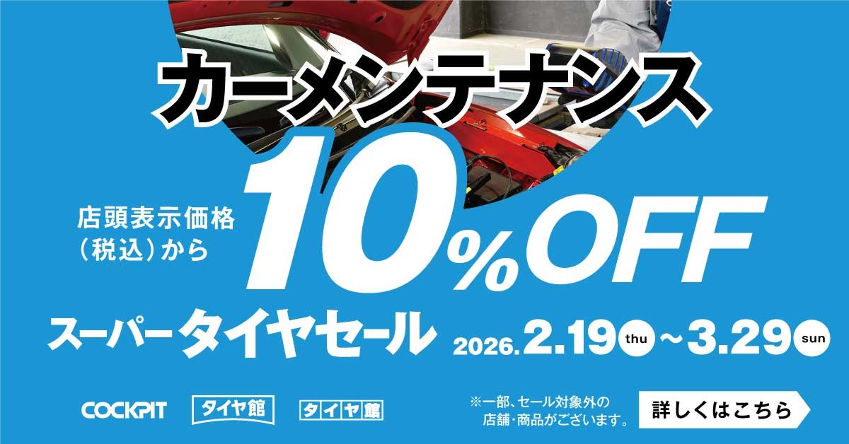 本日よりスーパータイヤセール開催です!! ポスト 2026年2月19日 2/19(木)~3/29(日)の期間でスーパータイヤセールを開催いたします!ノーマルタイヤ・スタッドレスタイヤ・アルミホイール・メンテナンス商品等、是非このセール期間中にお買い求めくださいませ!タイヤ館アプリも併せてご登録いただきますと即日使えるタイヤクーポン・メンテナンスクーポンも配布されますので是非ご活用くださいませ!皆様のご来店・ご相談お待ちしております! タイヤ館 小松川 住所:132-0033東京都江戸川区東小松川1丁目12番26号 電話番号: 03-5607-7671 相談予約 カテゴリ:タイヤ関連 お知らせ その他メンテナンス
