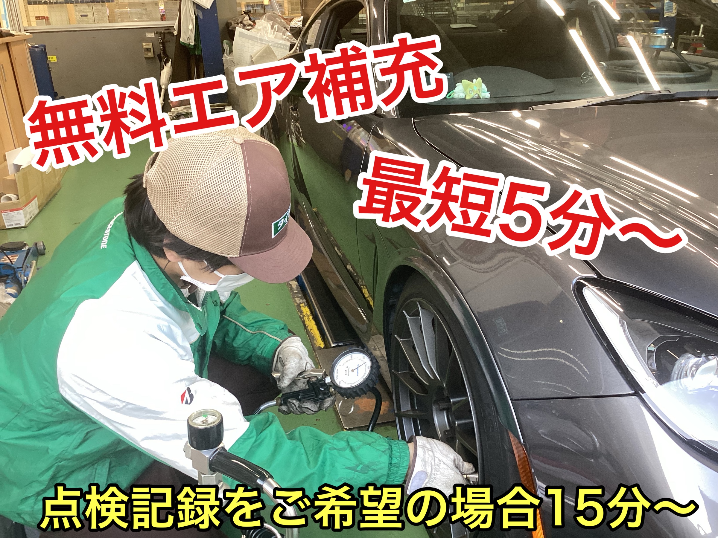 タイヤ館小松川では 無料エア補充 最短5分〜 ご案内できます!