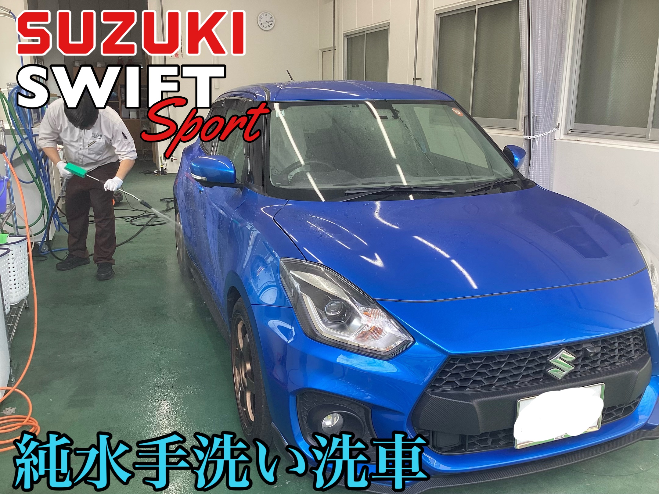 今回は、スイフトスポーツに純水手洗い洗車を行いました