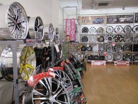 タイヤコーナーの先にはズラーッとカッコイイホイールが並んでいますよ♪