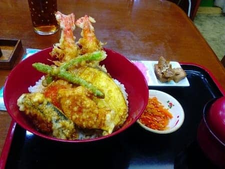 ウオッセ21では、私のお勧めの食べ物はジャンボ海老天丼!