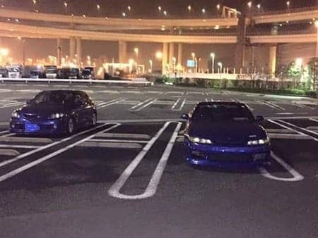 まず撮った一枚は私のアクセラと友達のシルビアのツーショットでした