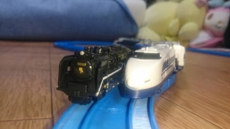 床が平らではないので脱線をしょっちゅう起こすので今度はベニヤ板を買ってその上に敷こうと思います♪