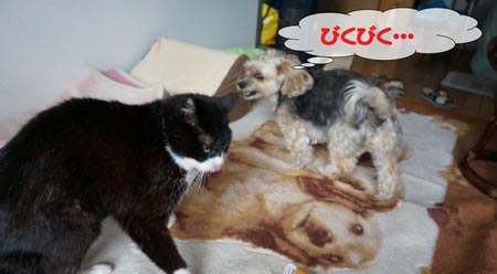 小さい頃、ムッチーの本気猫パンチに頭を叩かれて以来、ビクビクしてます(笑)