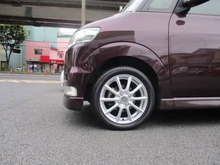 本日はタントにタイヤ交換と同時にアルミホイールを変更します。