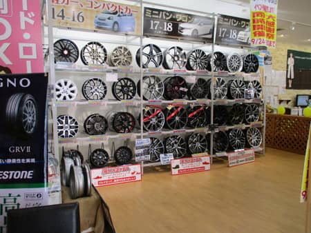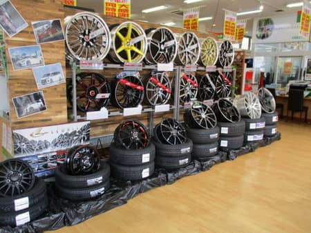 タイヤ館小松川店では、なるべく沢山のホイールを展示しております。