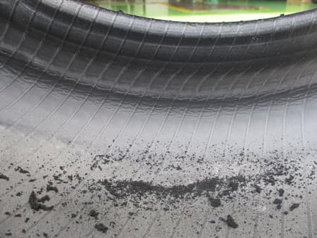 中には写真のような削れカスが出ます。横にはしわのようになってしまっています。