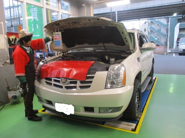 本日はなんと・・・キャデラックエスカレードのオイル交換なども行いました!