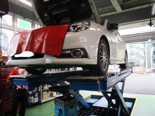 2枚目の画像:レガシィのオイル交換の作業になります。