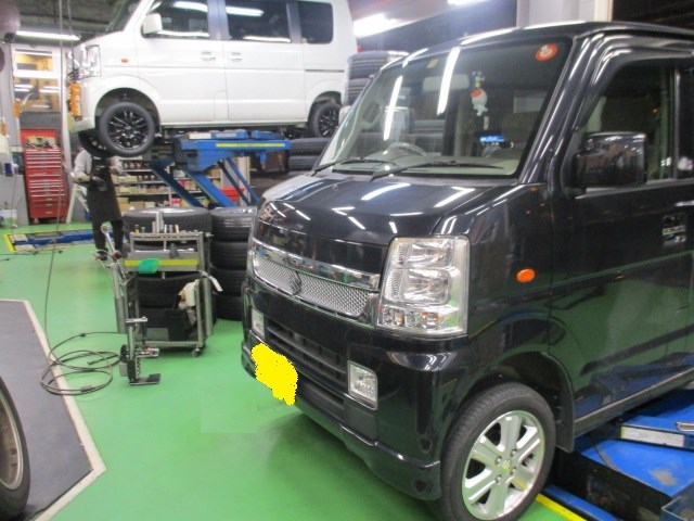 画像3:エブリイでのフルピットの状態です。二台ともタイヤ交換、そしてその内一台はオイル交換も行いました。
