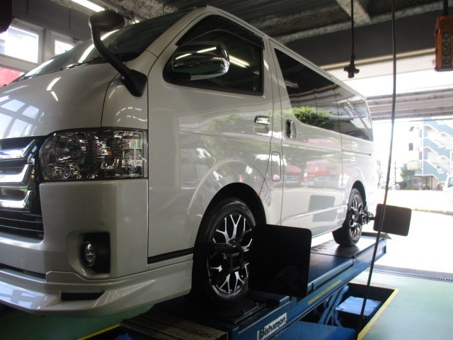 今日は、タイヤ交換を行ったハイエースをアライメント調整です!!