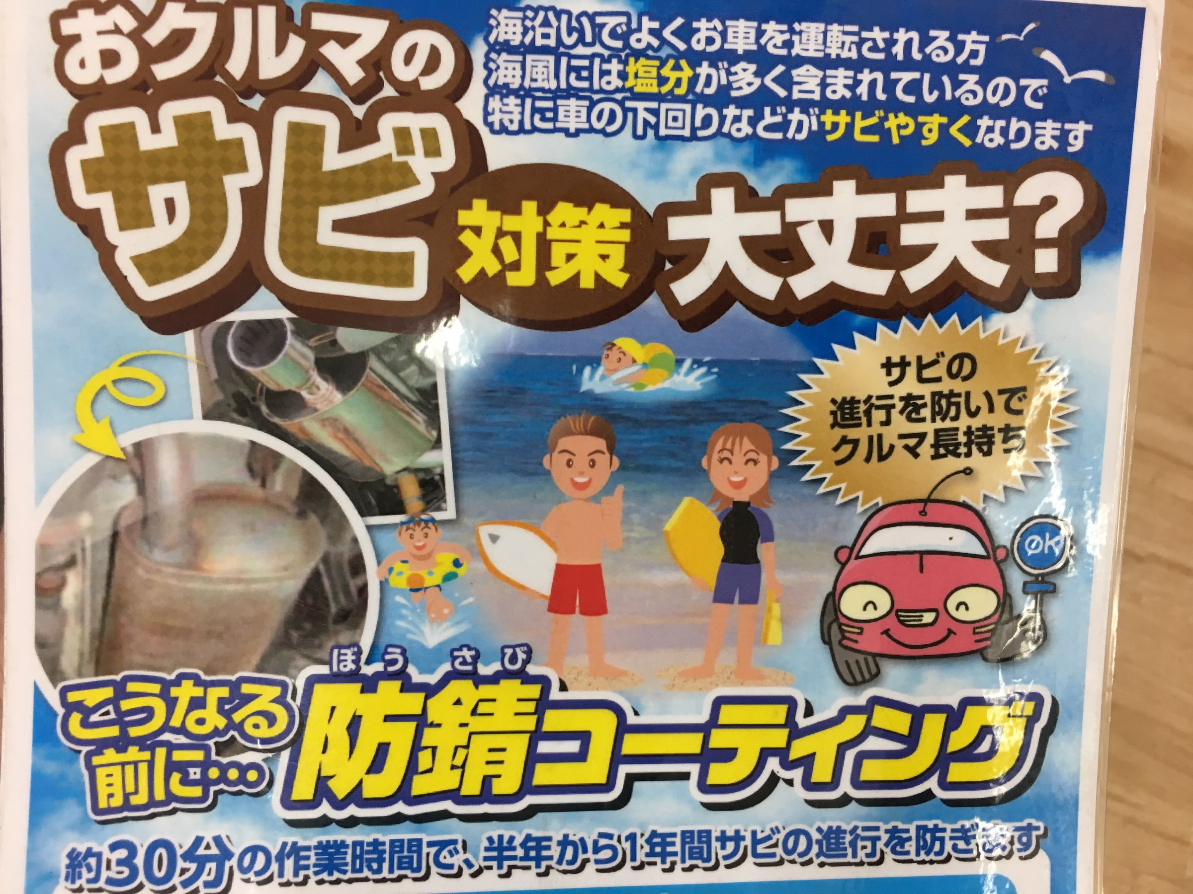 海風など塩分が含まれている所へ行かれると結構車の足回りが錆びやすくなるので、