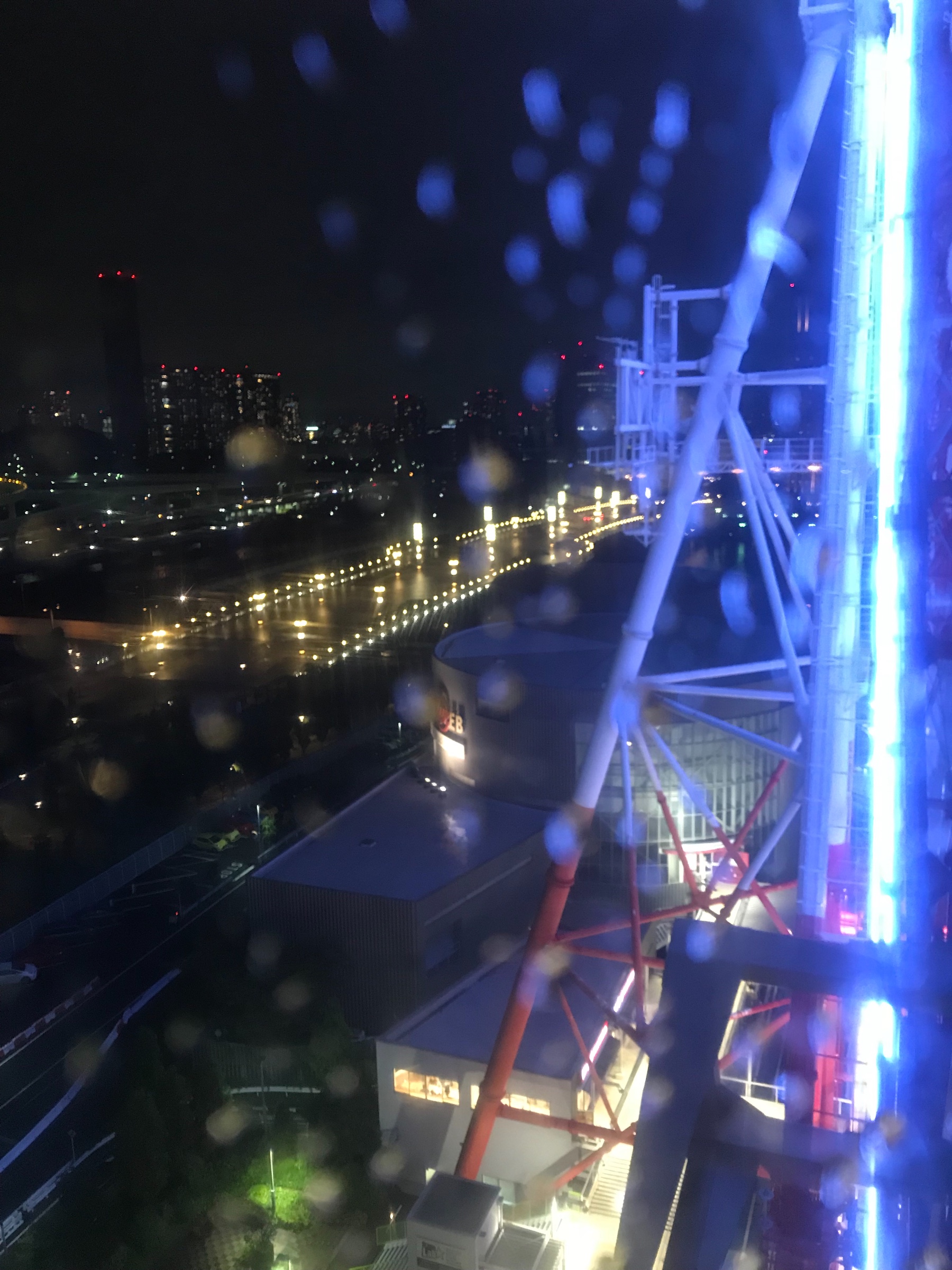 夜の雨に観覧車に乗りに行きました。