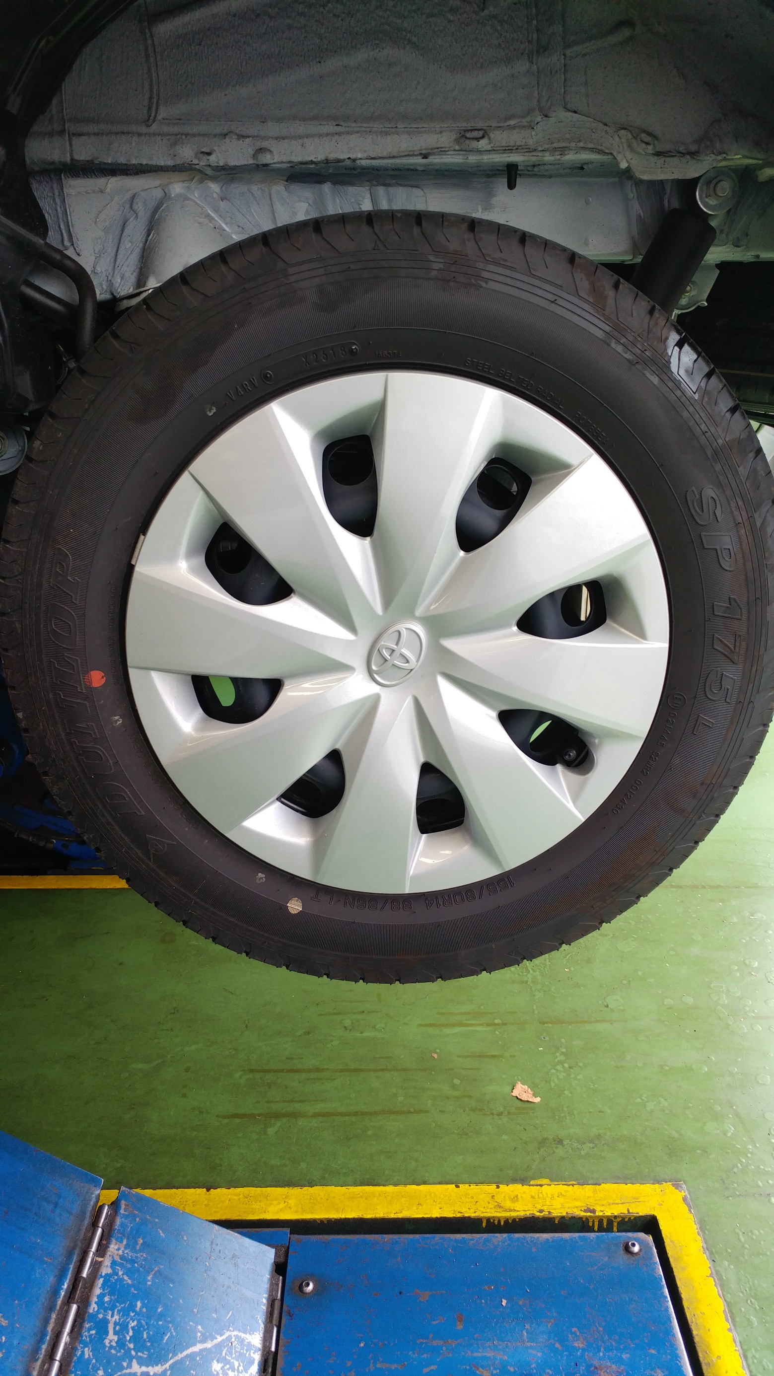 本日はお車を乗っていてなにやら左後ろのタイヤが変な感じがする。ということでタイヤの点検です。