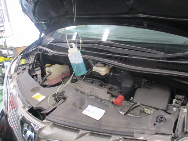 まずは点滴みたいなもので洗浄剤をエンジンに吸わせてる画像になります。