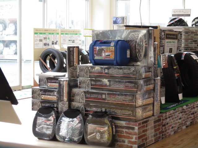 スタッドレスタイヤはもちろんですがタイヤチェーンの取り扱いもございます!!