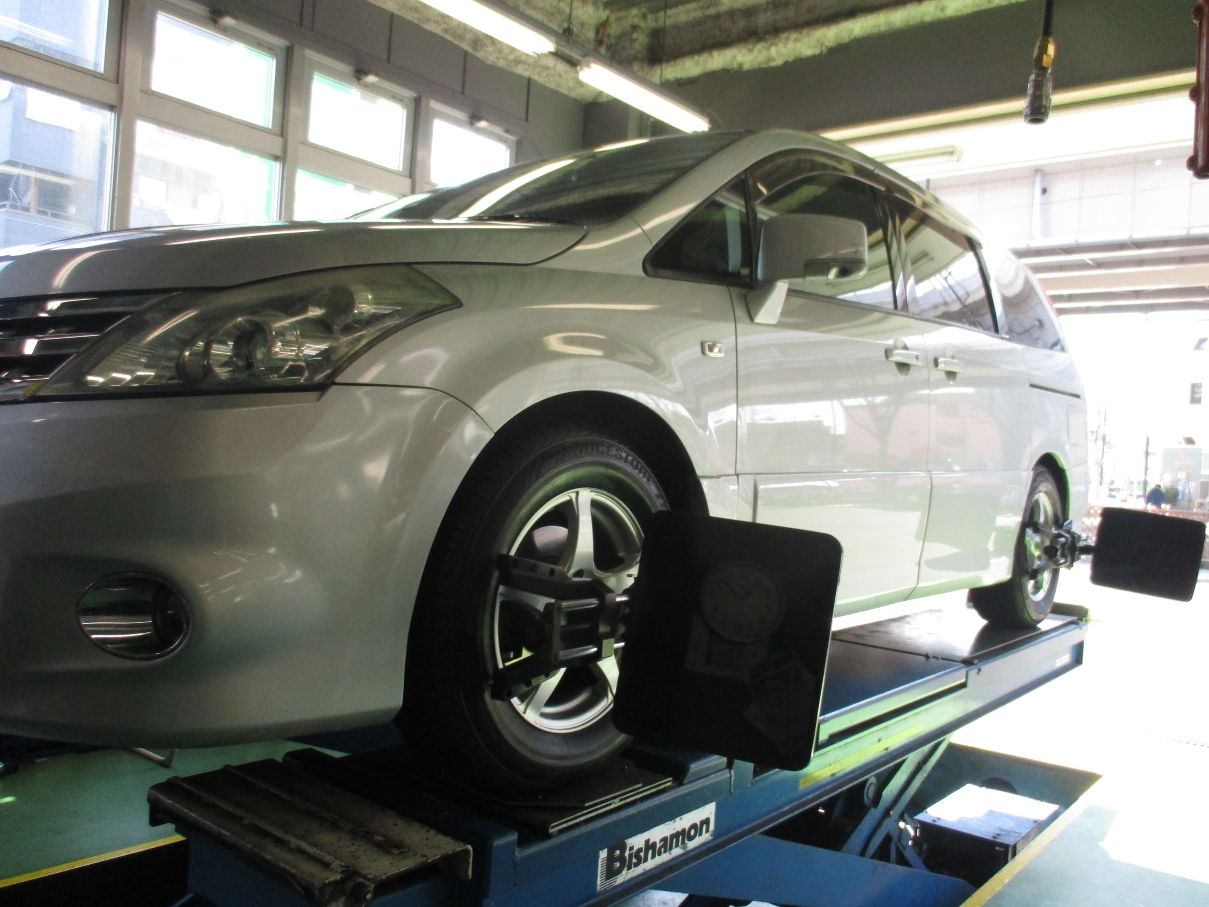 今日は日産のミニバン、プレサージュのアライメントを実施しました。