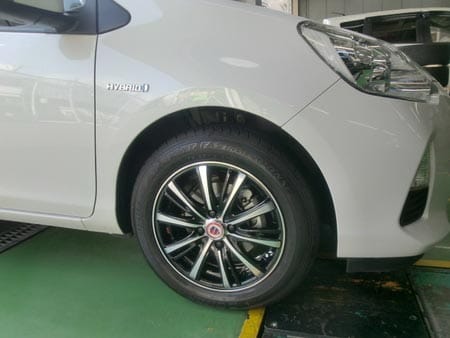 純正のキャップ付き鉄ホイールからカッコイイアルミホイールに