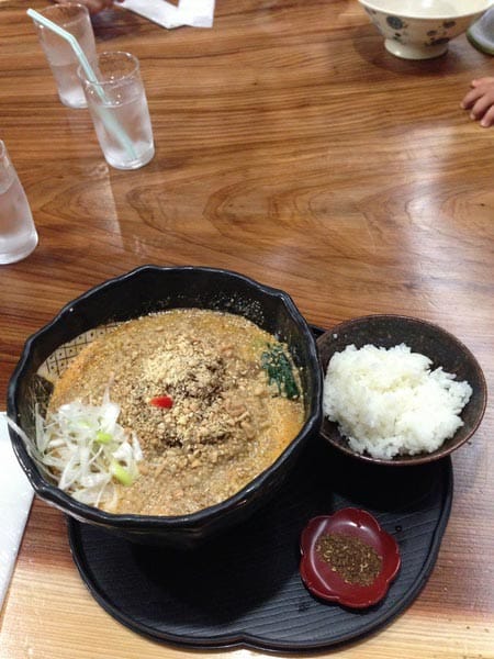 ゴマがたっぷりの濃厚なスープの担担麺でした。最後にライスでしめるのもお勧めだったので