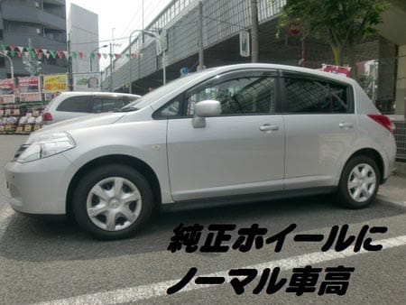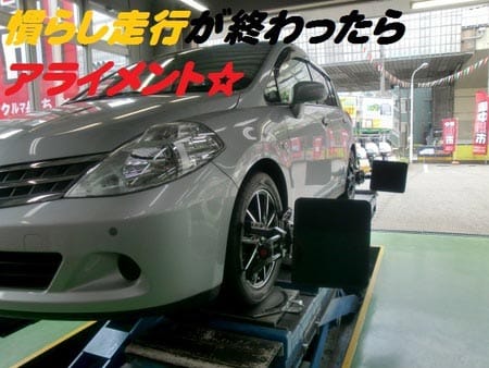 今日は 『ティーダ』 のホイールセット と ダウンサス取付 と アライメント