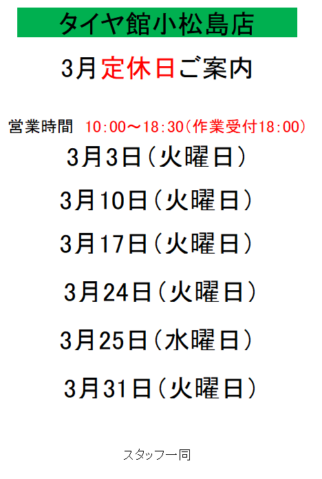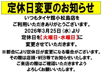定休日変更のお知らせ