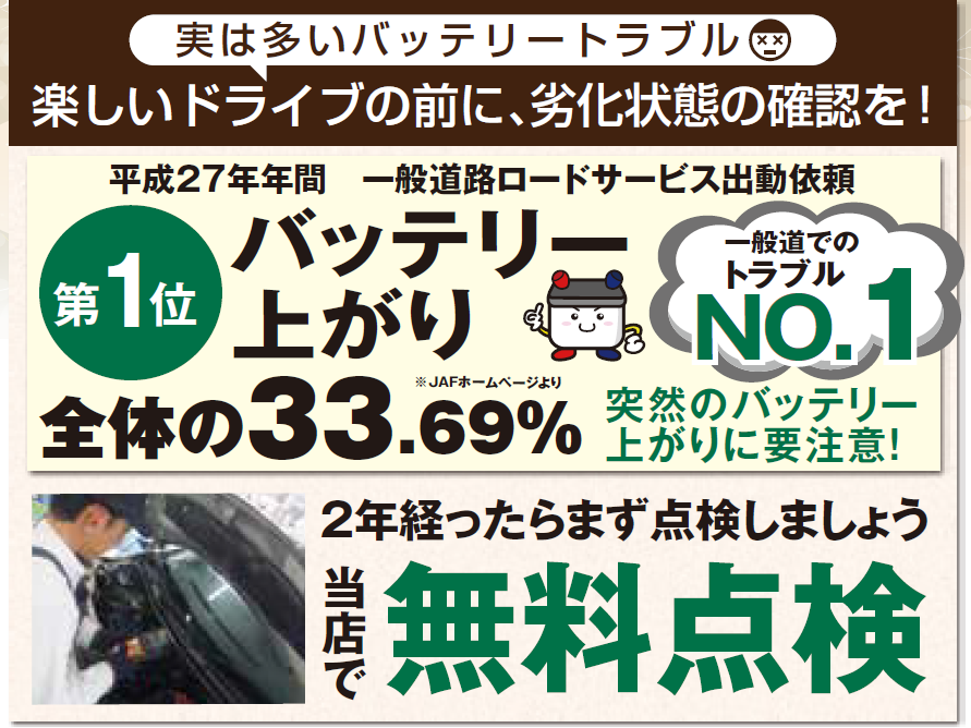 お出かけの前には、バッテリーの点検をオススメします♪