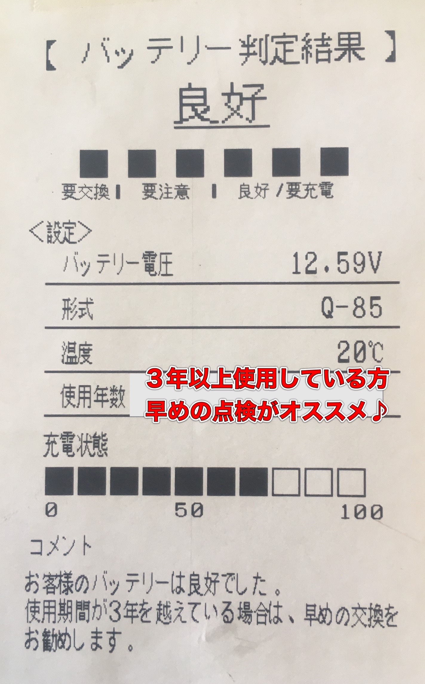 年数確認・バッテリーテスターを使用しての点検