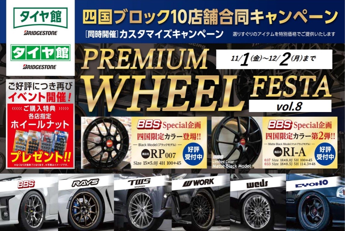 本日よりホイール展示開始!12月2日まで(^▽^)/ ポスト 2024年11月29日 本日よりホイール展示開始!12月2日まで(^▽^)/ タイヤ館小松島店では現在! 各メーカーさんのアルミホイールを多数展示中♪ アルミホイールをご検討中のお客様は 現物のホイールを是非見に来てください! もちろんお見積りだけでも構いませんので お気軽にご来店くださいませ(^▽^)/ タイヤ館 小松島 住所:773-0009徳島県小松島市芝生町字狭間20-1 電話番号: 0885-34-0780 相談予約 カテゴリ:ホイール関連 担当:タイヤ館小松島