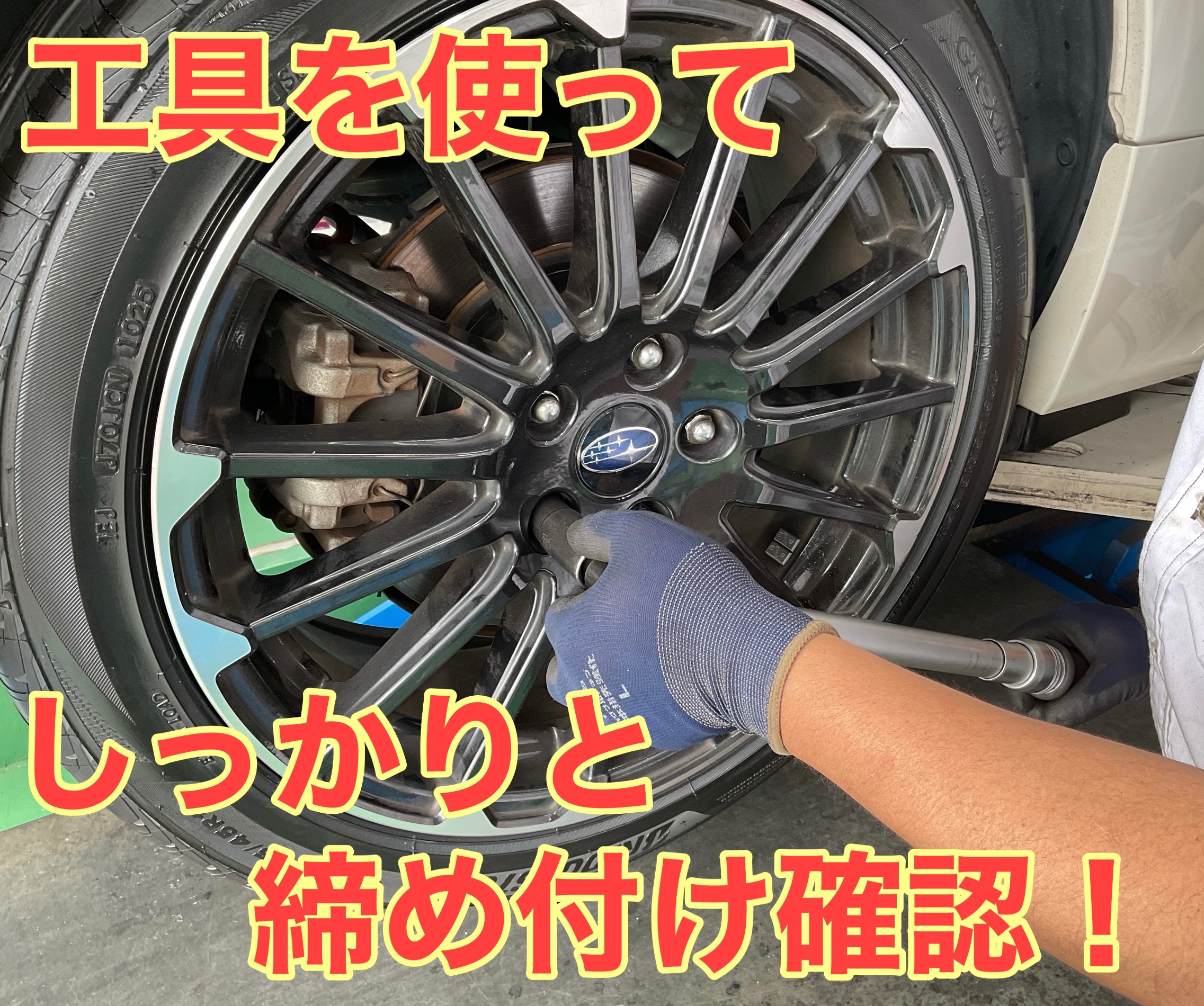 タイヤ交換後には、専用の工具を使って