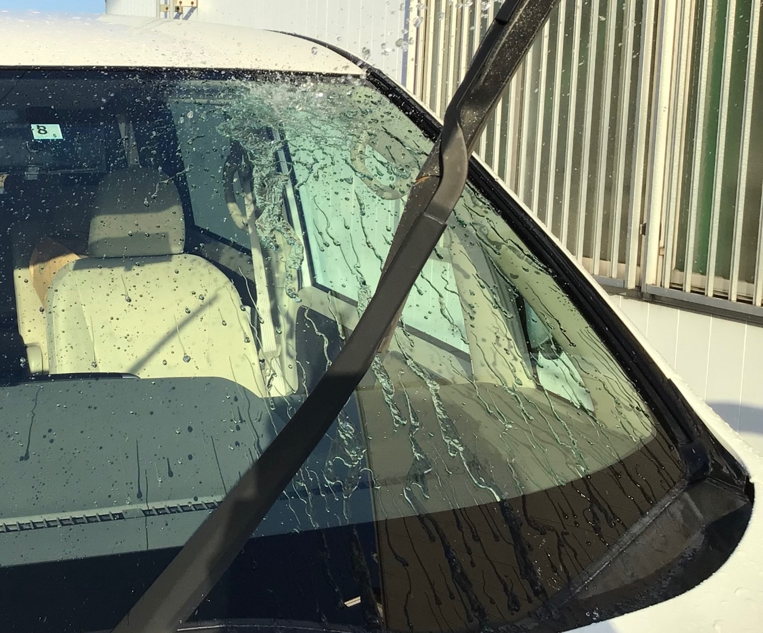 水滴がガラスに残り、視界が悪い状態です(>_<)