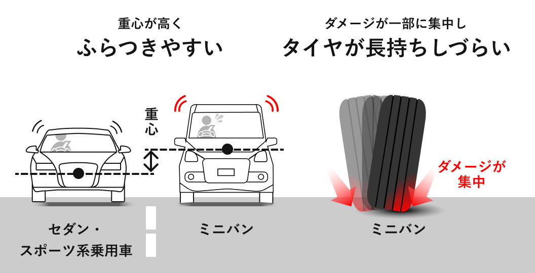 ミニバン専用設計のタイヤはそう言ったミニバン特有のふらつきを