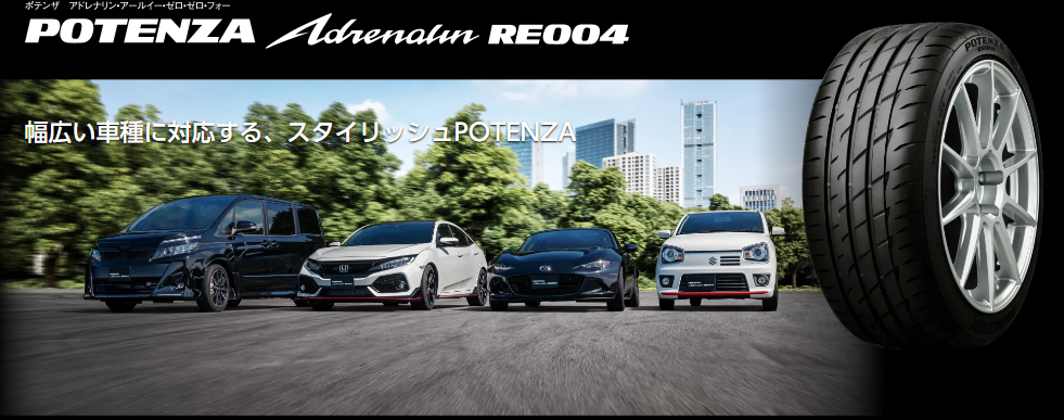 こちらのポテンザRE004は幅広いサイズラインナップにより