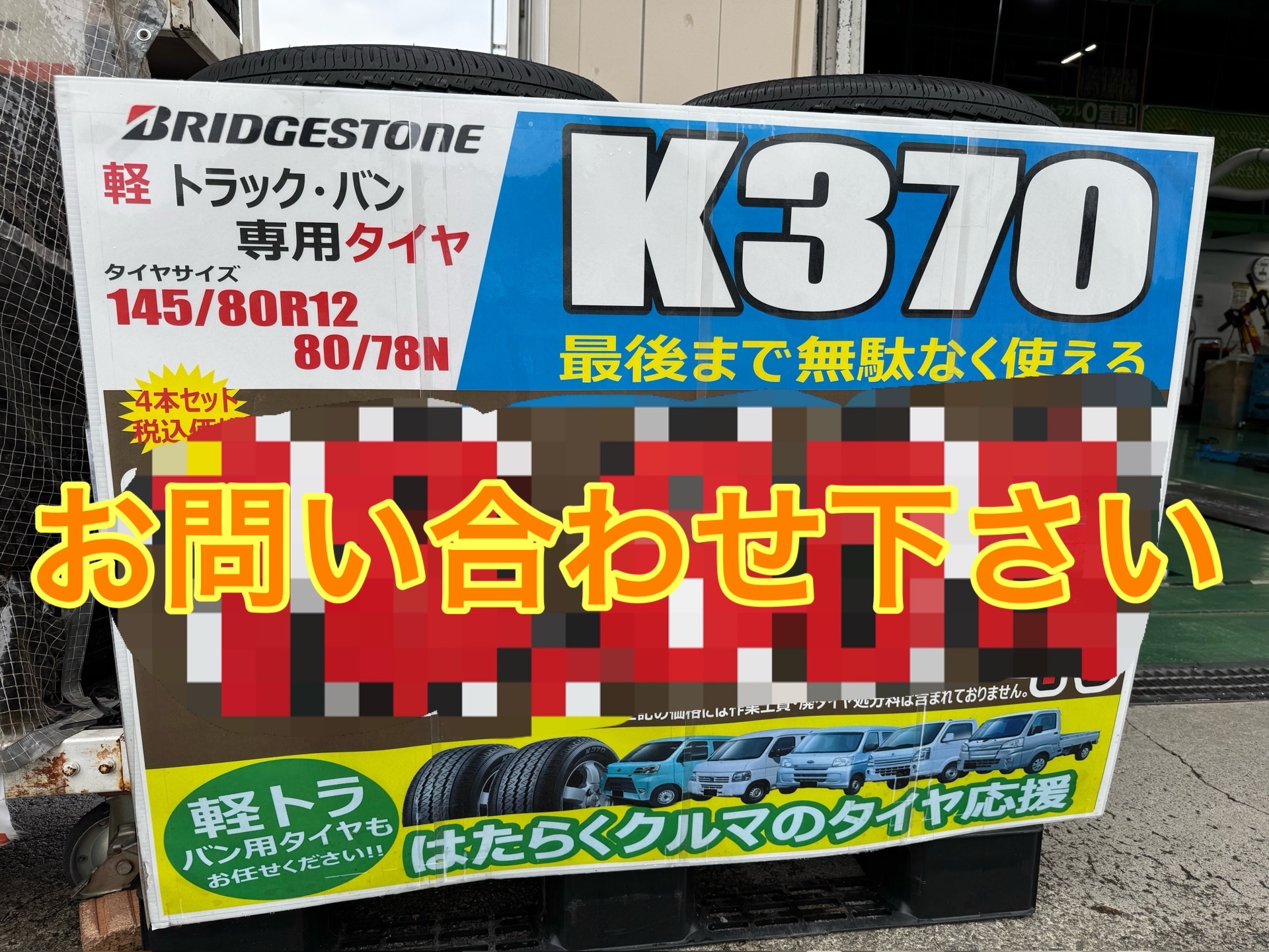 軽バン&軽トラのタイヤがお得です!!ブリヂストン製K370