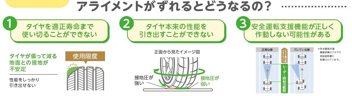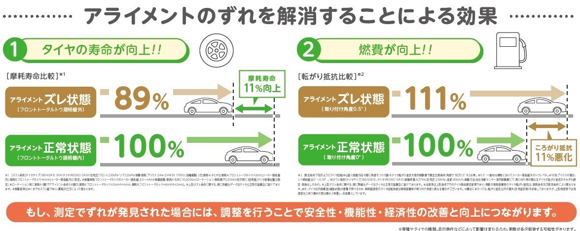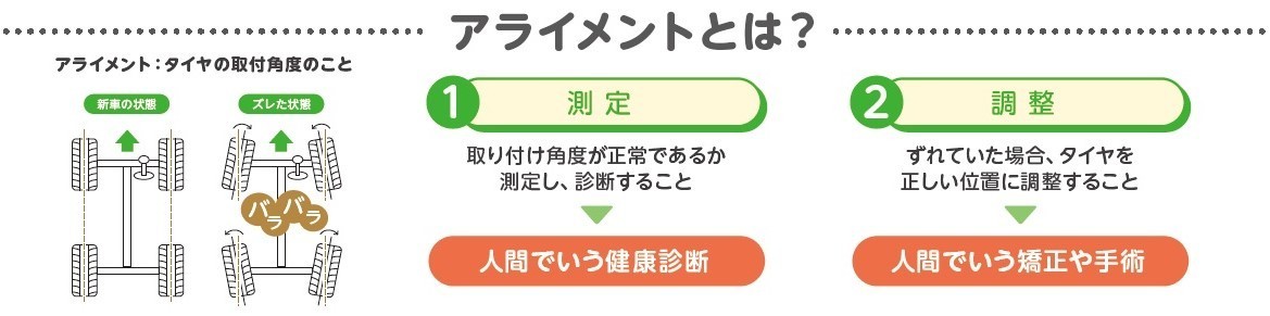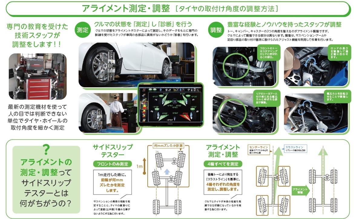 車を長く安全に乗るために欠かせないのが「アライメント調整」です。