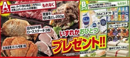 タイヤをお買い上げ頂いたお客様に金額に応じてもれなくプレゼント中のグルメギフト♪