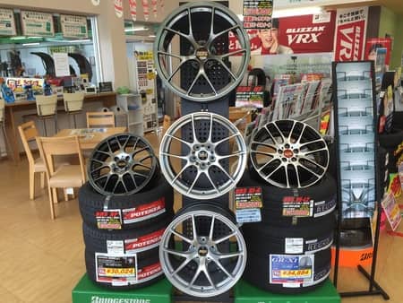 店内入口近くにBBSホイールをど~んと展示しました☆