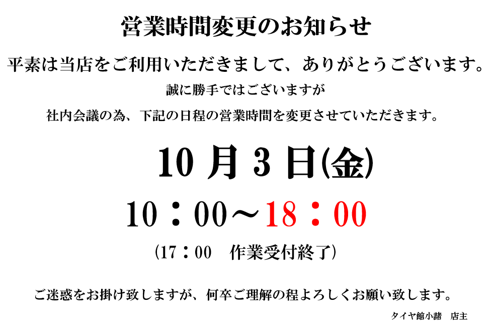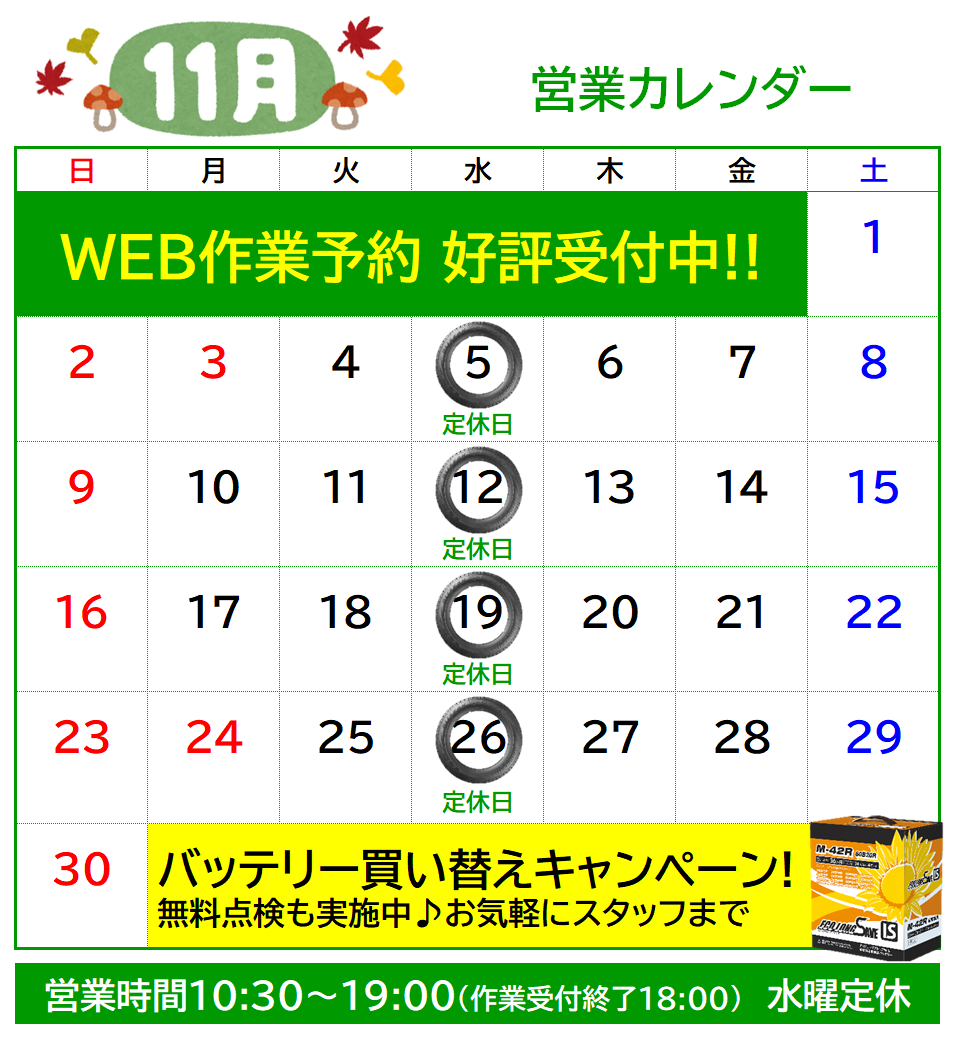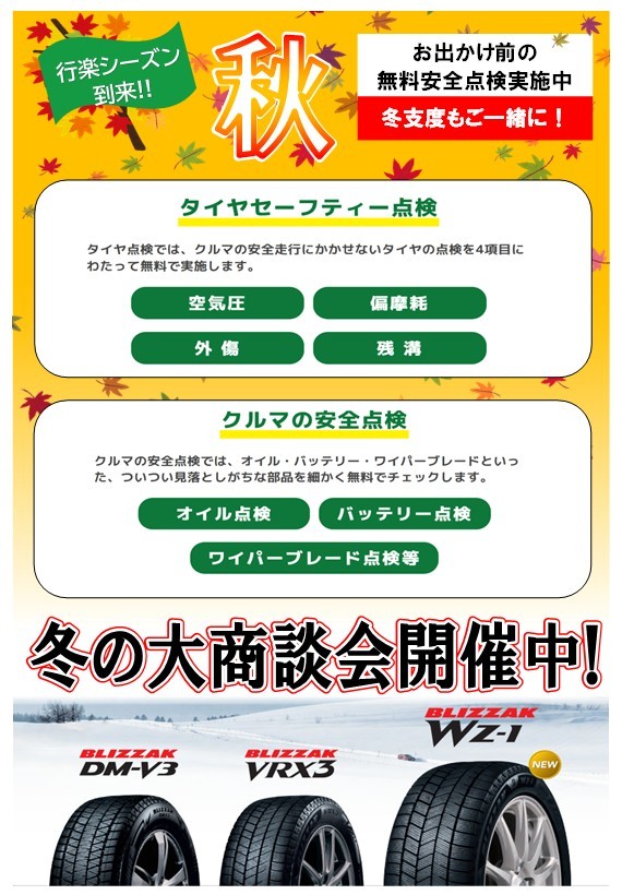 秋のメンテナンスはタイヤ館小諸へ!