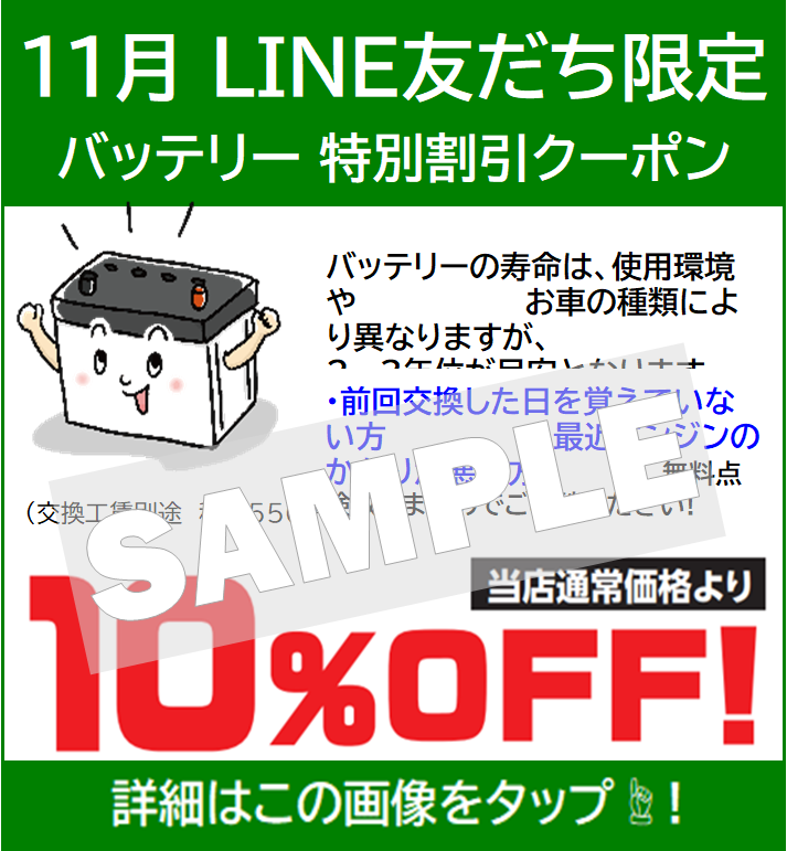 11月のLINEクーポンは「バッテリー」