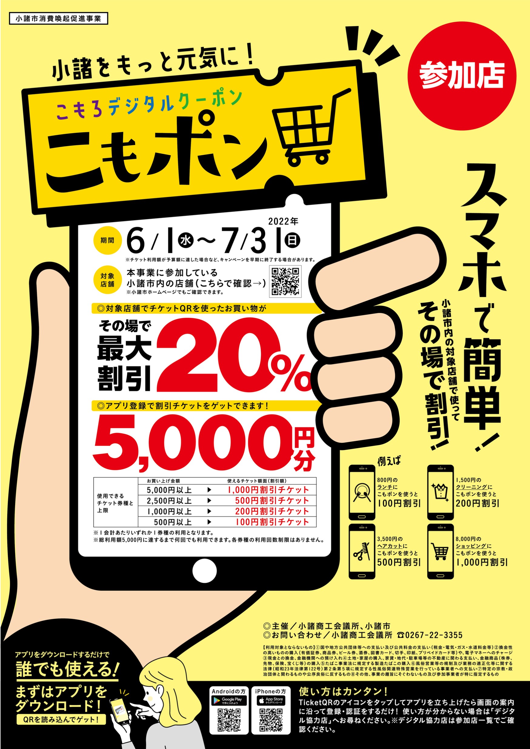 小諸市のデジタルクーポン「こもポン」も使用可能ですので