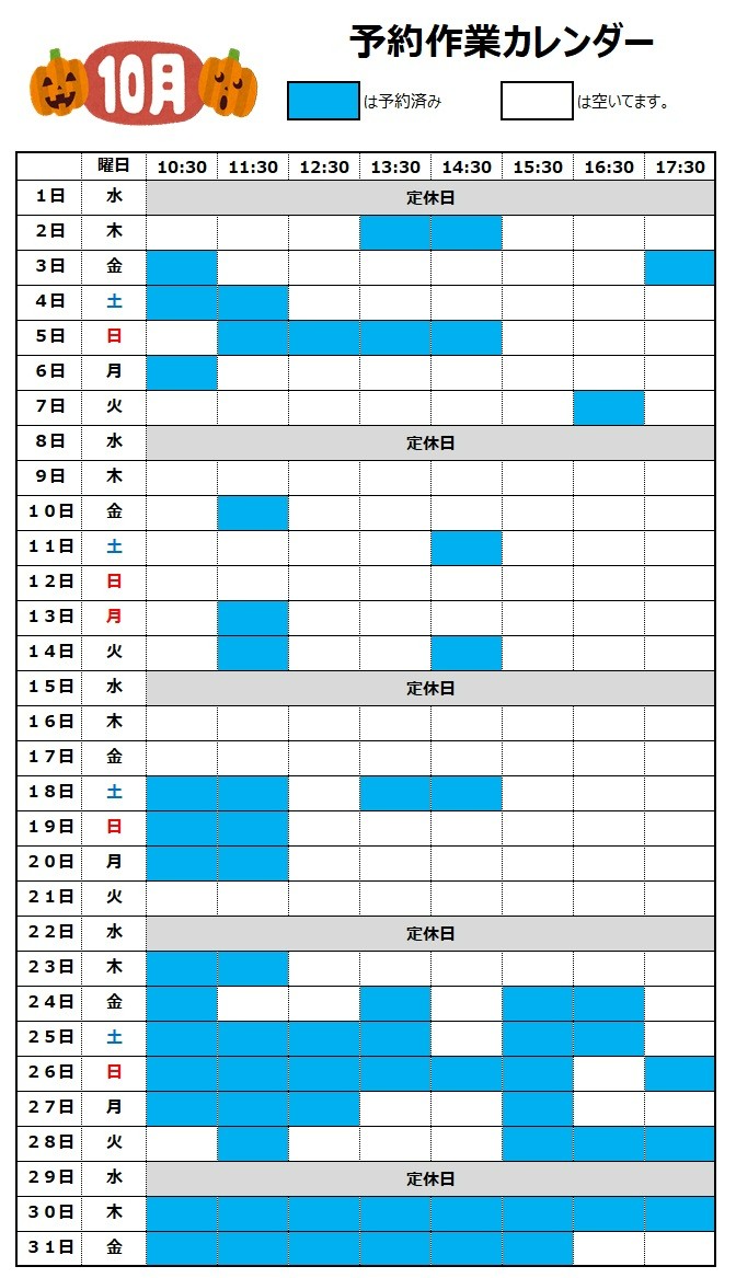 埋まってきていますので、10月中には