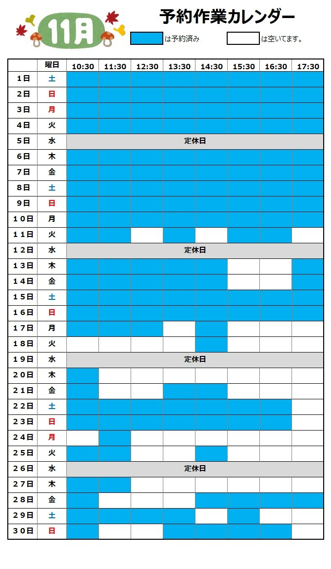 11月の予定を組んでいただくのがおススメです♪